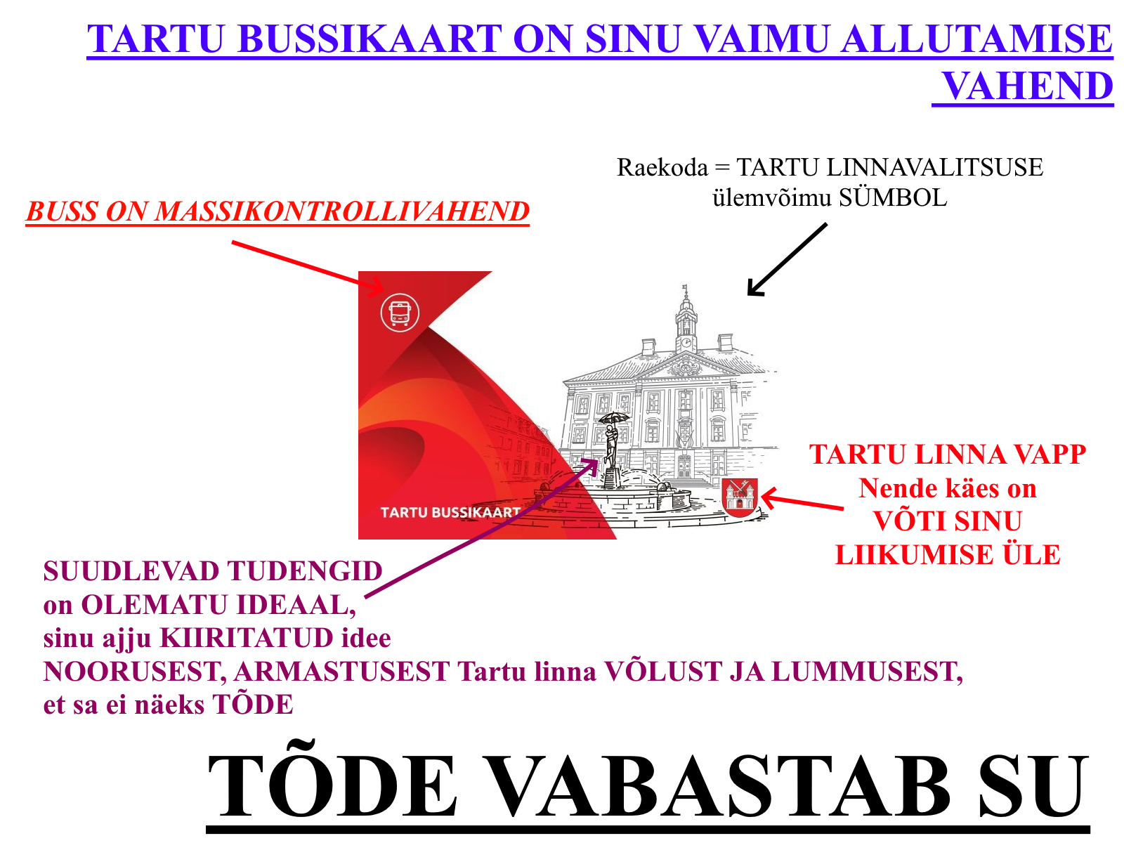"Heade mõtete linn" Tartu lööklause peidab KOLEDAT TÕDE, kuidas Tartu linnavalitsus KONTROLLIB MEIE MEELSUST, et meil oleks ainult sobivad, AUTORITEEDI POOLT LUBATUD MÕTTED